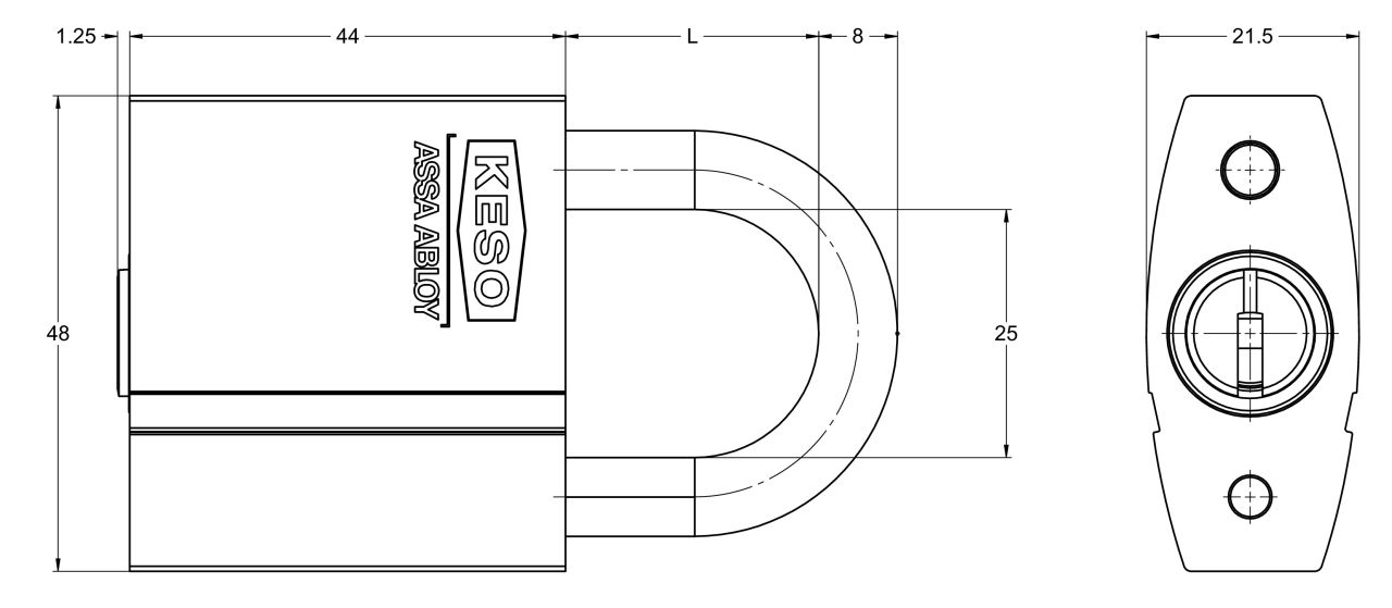 - Hauteur de l'anse 25 mm, disponible également avec des hauteurs d'anse de 50 et 100 mm