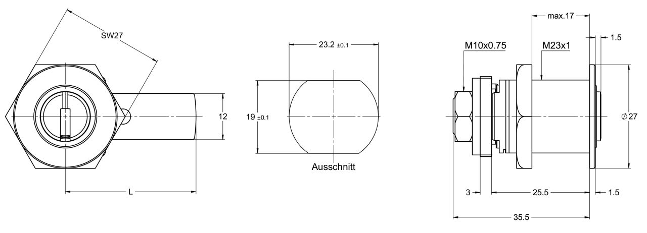 - Cylindre à écrou universel (Insert) avec fixation par écrou pour portes de garde-robes, armoires à outils, boîtes aux lettres, interrupteurs, montages métallique et bois.