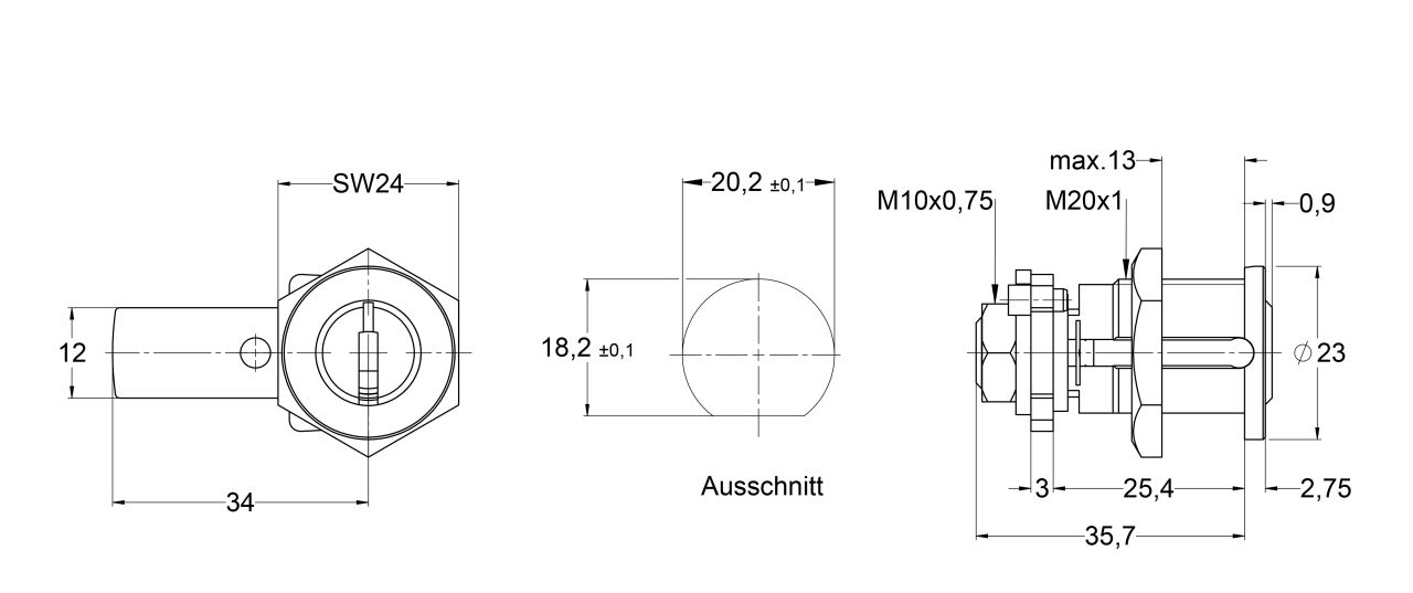 - Cylindre à écrou universel avec fixation par écrou pour portes de garde-robes, armoires à outils, boites aux lettres, interrupteurs, montages métallique et bois.