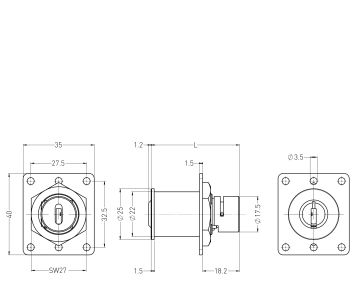 - Cylindre avec écrou hexagonal M21 x 1 mm et surface d'arrêt sur la plaque de fixation sécurisée contre la torsion.