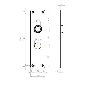 ENTREE LONGUE 5404 POUR SERRURE 2103 SCHÄNIS Entrée longue nickelée brossée, avec rosace, 200 x 50 x 2