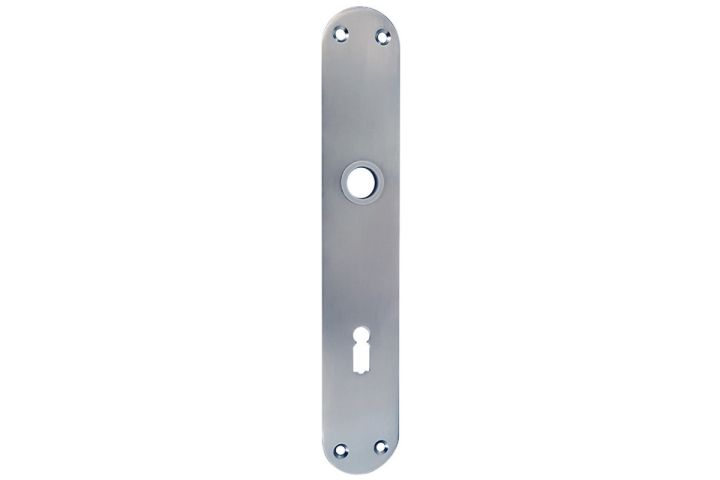 ENTREE OVALE INOX, 6243 Nickal Entrée longue 235x40x2mm, avec guide de poignée serti et bague nylon autolubrifiante