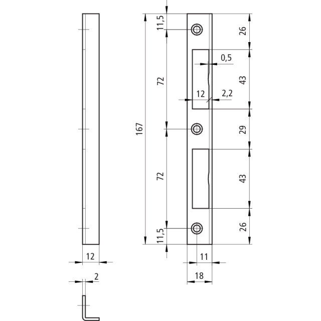 GÂCHE À ÉQUERRE CARRÉE POUR SERRURE 1020 / 1260 SCHÄNIS Gâche pour portes intérieures à recouvrement, zinguée bleu