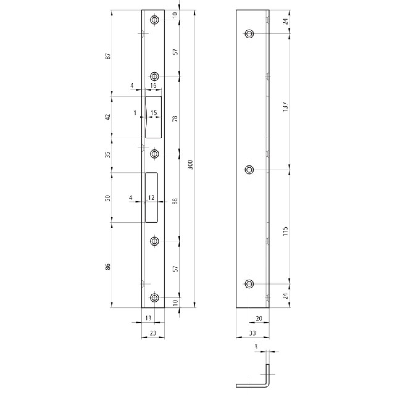 GÂCHE À ÉQUERRE DE RÉNOVATION 300MM SCHÄNIS Gâche pour portes d'entrée et palières à recouvrement, pour serrure 1261R / multipoints, zinguée bleu
