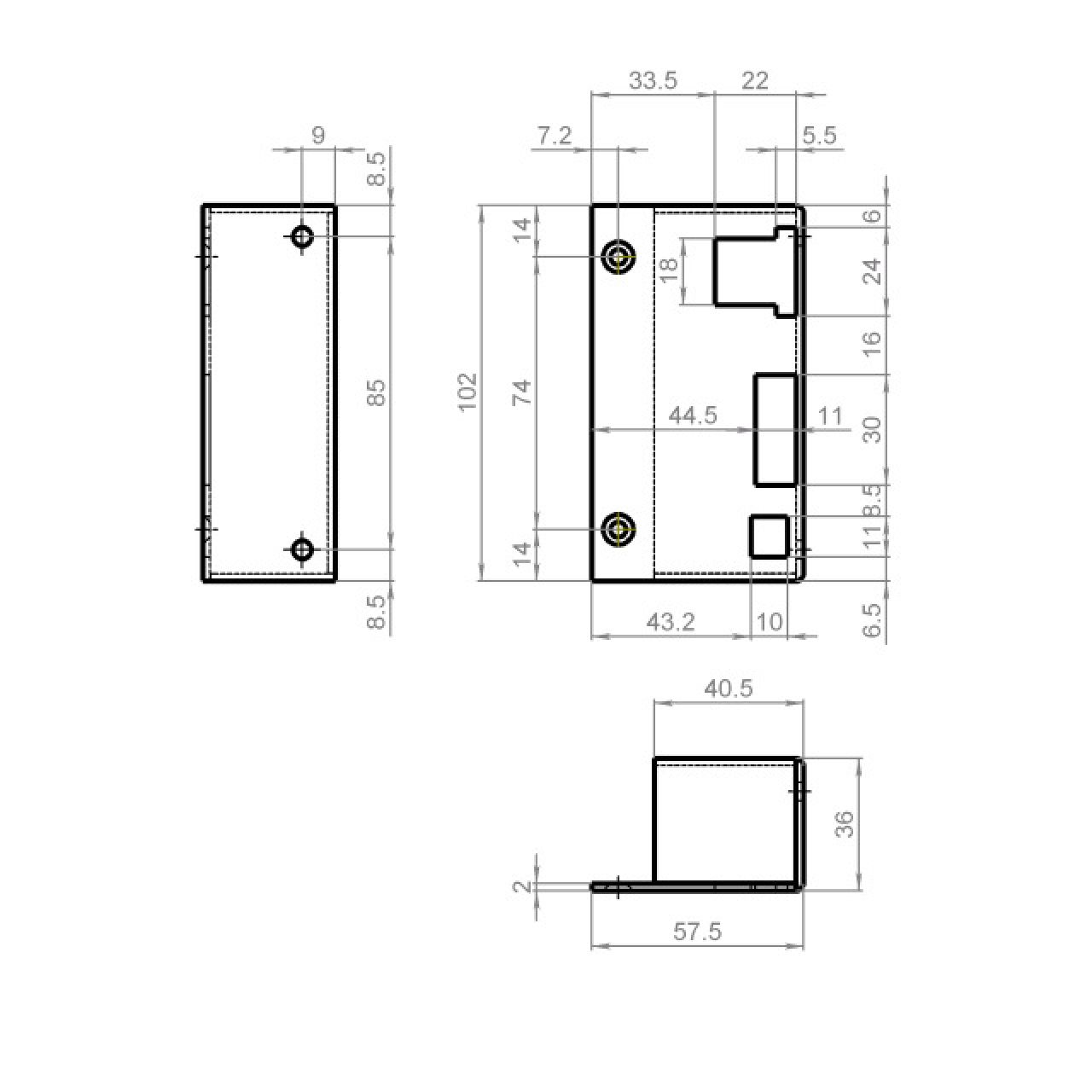 GÂCHE ENCLOISONNÉE POUR SERRURE 2005 SCHÄNIS Gâche encloisonné et à équerre contrefalle, pour portes s'ouvrant à l'intérieur avec recouvrement normal (16mm)