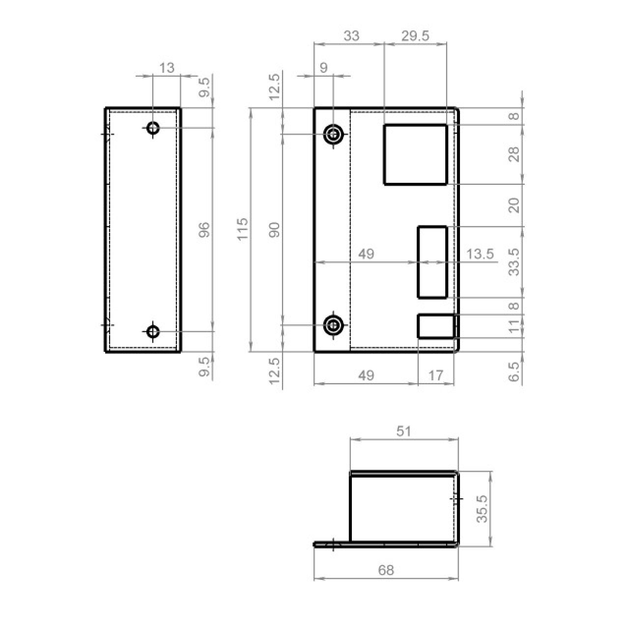 GÂCHE ENCLOISONNÉE POUR SERRURE 2103 SCHÄNIS Gâche encloisonnée zinguée bleu et à équerre contre falle, pour portes s'ouvrant à l'intérieur avec recouvrement normal (18mm)