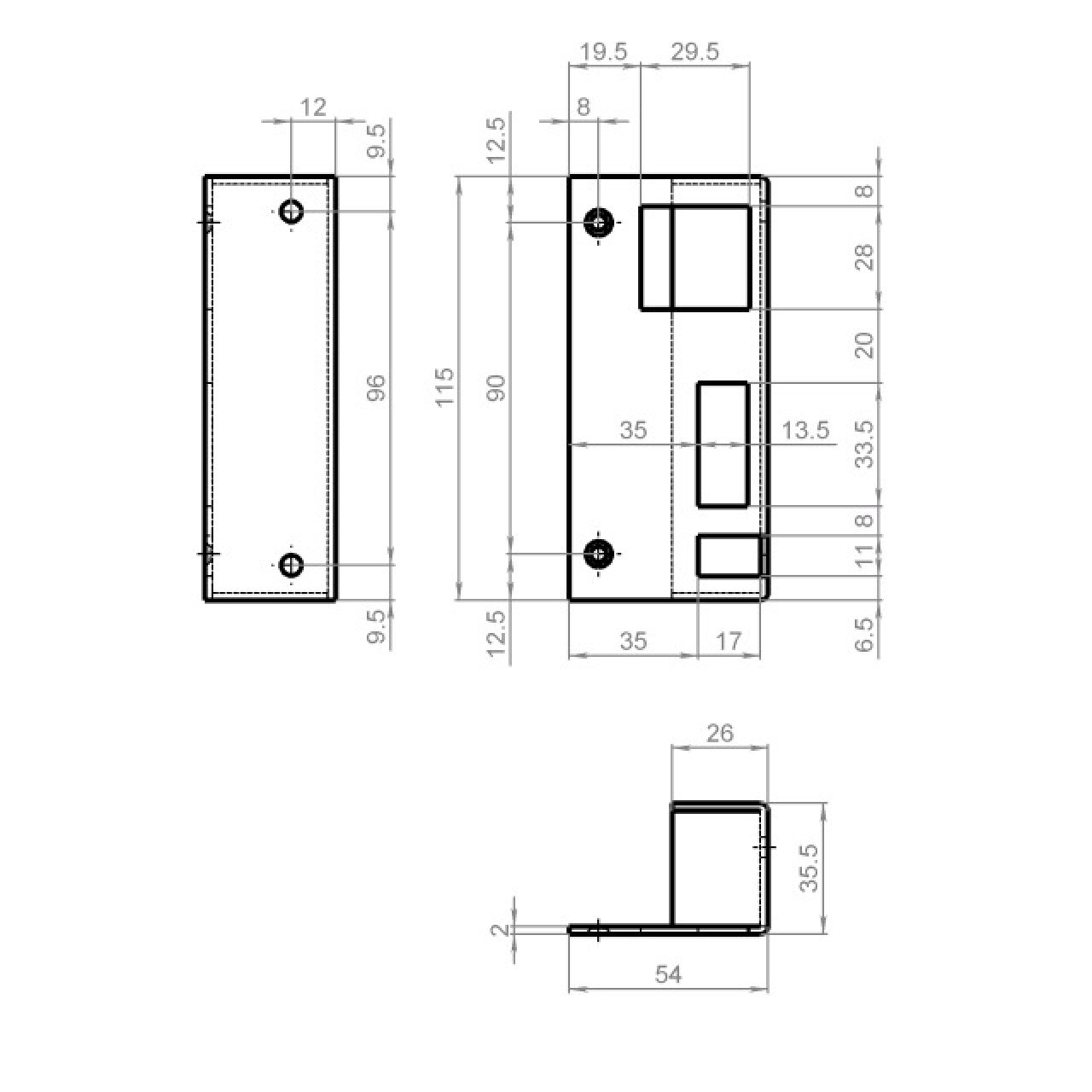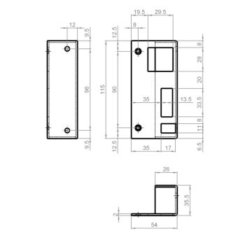 GÂCHE ENCLOISONNÉE POUR SERRURE 2103 (s'ouvrant à l'intérieur) SCHÄNIS Gâche encloisonnée zinguée bleu et à équerre contre falle, pour portes à fleur s'ouvrant à l'intérieur