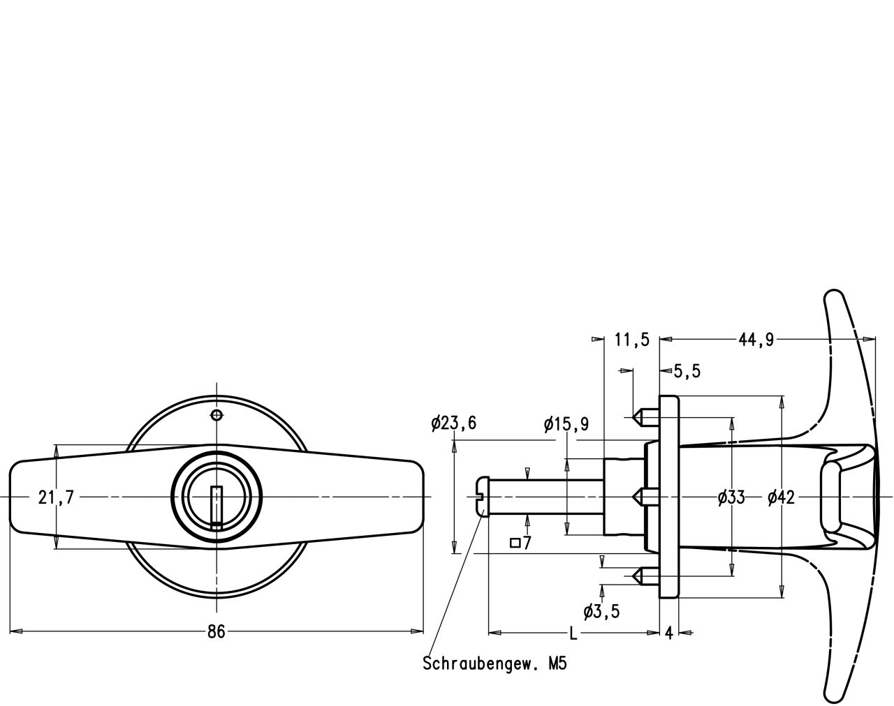 - Également disponible pour les armoires en métal, ainsi que sous forme de poignée borgne fixe ou tournante