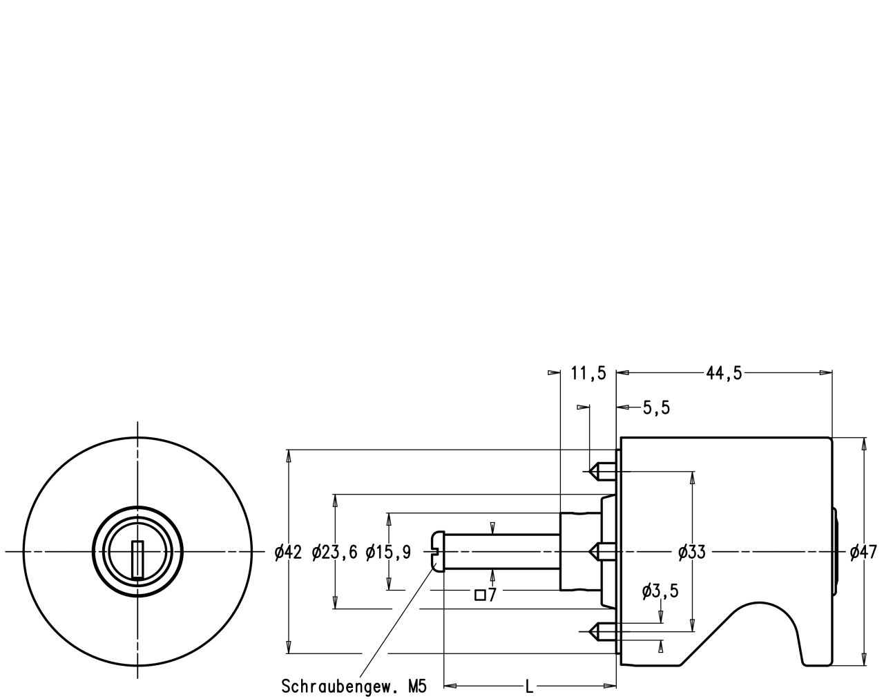 - Olive à cylindre ronde d'un diamètre de 47 mm (Insert) pour serrures à espagnolettes et serrures à tringles traditionnelles avec tige carrée 7 × 7 mm.