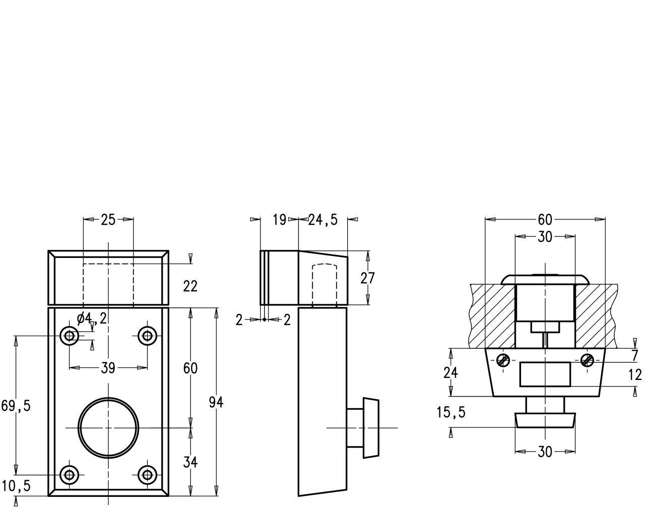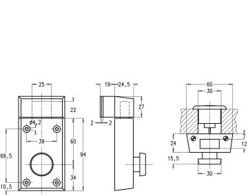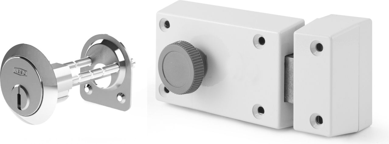 - Verrou avec bouton tournant et cylindre extérieur excentré pour portes profilées en acier, en aluminium ou en plastique ainsi que pour la sécurisation de fenêtres.