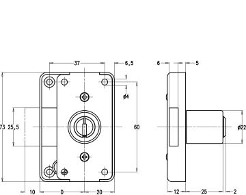 - La serrure en applique universelle avec cylindre de meubles est une serrure pour meubles, portes d'armoire et tiroirs.