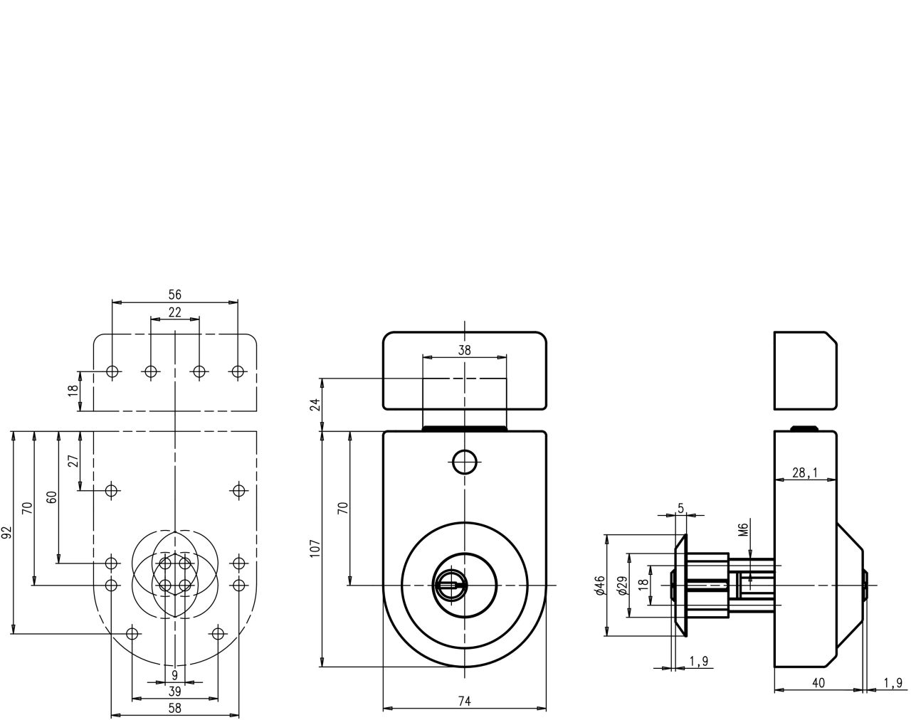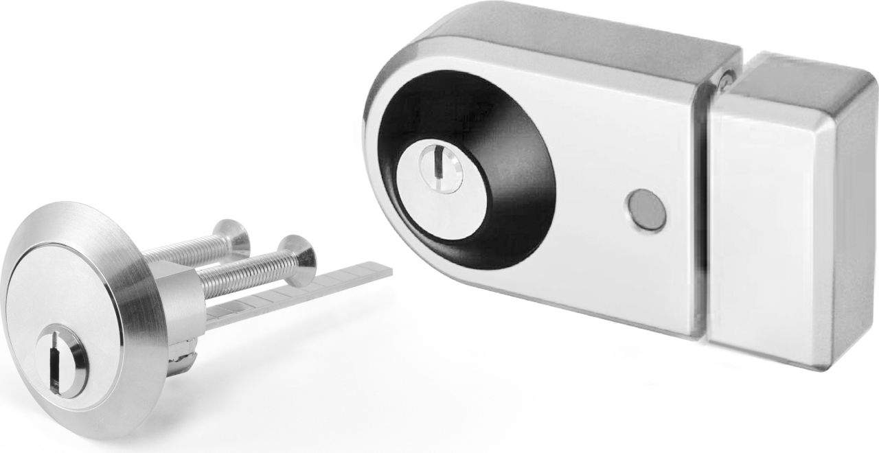 - Verrou avec cylindre intérieur et cylindre extérieur excentrés pour portes profilées en acier, en aluminium ou en plastique ainsi que pour la sécurisation de fenêtres.