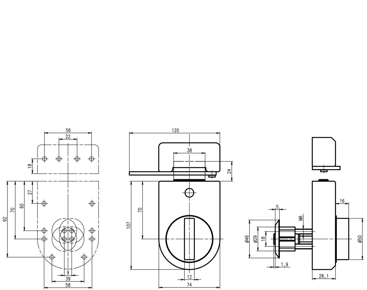 - Verrou avec bouton tournant pour portes profilées en acier, en aluminium ou en plastique ainsi que pour la sécurisation de fenêtres, y compris entrebâilleur.